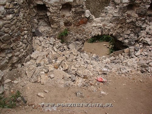 Zamkowe fosy natomiast pełne są śmieci i kamieni, które wpadały do niej z obsypujących się murów. Podobnie sprawa ma się z dziedzińcem II oraz III, a także z dziedzińcem utworzonym na terenie byłej wieży mieszkalnej. Dna tych dziedzińców wypełnione są kamieniem, który po odgruzowaniu może posłużyć do zabezpieczenia i rekonstrukcji murów zamkowych. Na terenie wieży mieszkalnej zapadły się jej stropy. Wśród gruzowiska można natknąć się na ślady belek, a także fragmenty kafli piecowych. Jestem pewien, że w trakcie prac zabezpieczających, jak i archeologicznych można liczyć na liczne znaleziska przedmiotów historycznych.